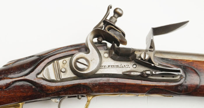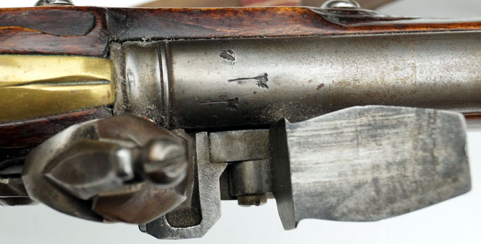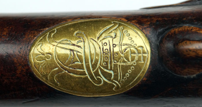 "FR" unter Krone als Herrscherchiffre auf dem Daumenblech.