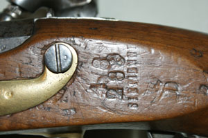 Auf dem Lauf "MR" für "Manufacture Royale", darunter Änderungsjahr "S.1861" der zweiten Aptierung auf das Miniésystem in St.Etienne.