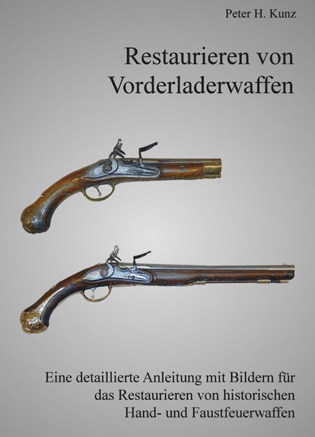 Restaurieren von Vorderladerwaffen Eine detaillierte Anleitung mit Bildern für das Restaurieren von historischen Hand- und Faustfeuerwaffen für handwerklich begabte Liebhaber von Vorderladerwaffen. Auf 109 A4-Seiten mit 230 schwarzweiss Zeichnungen und Abbildungen wird anhand von Beispielen auf kurze, jedoch verständliche Weise das Restaurieren ganzer Vorderladerwaffen oder das teilweise Nachbauen deren Einzelteile erläutert. Eine Anleitung für Personen, welche Ihre historischen Waffen gerne selbst in einen gut restaurieten Zustand bringen möchten und dazu auch das erforderliche technische Verständnis und die handwerklichen Fähigkeiten besitzen. Ausführung: Schwarzweiss Druck, Spiralbindung, Hardcover ISBN 978-3-033-04909-3 Lieferbarkeit: Ab Mitte März 2015 Verkaufspreis: EU: EUR 28,00, Lieferung ab Deutschland CH: CHF 30,00, Lieferung ab der Schweiz Anfragen und Bestellungen: Autor: Peter H. Kunz Breitenaustrasse 156, CH 8200 Schaffhausen, Schweiz Tel.: 0041 52 (0) 625 37 24, E-Mail: feuerwaffen@bluewin.ch, www.feuerwaffen.ch Verlag: Stiftung Feuerwaffen Peter Kunz Breitenaustrasse 156, CH 8200 Schaffhausen, Schweiz Tel.: 0041 52 (0) 625 37 24, E-Mail: feuerwaffen@bluewin.ch www.feuerwaffen.ch |