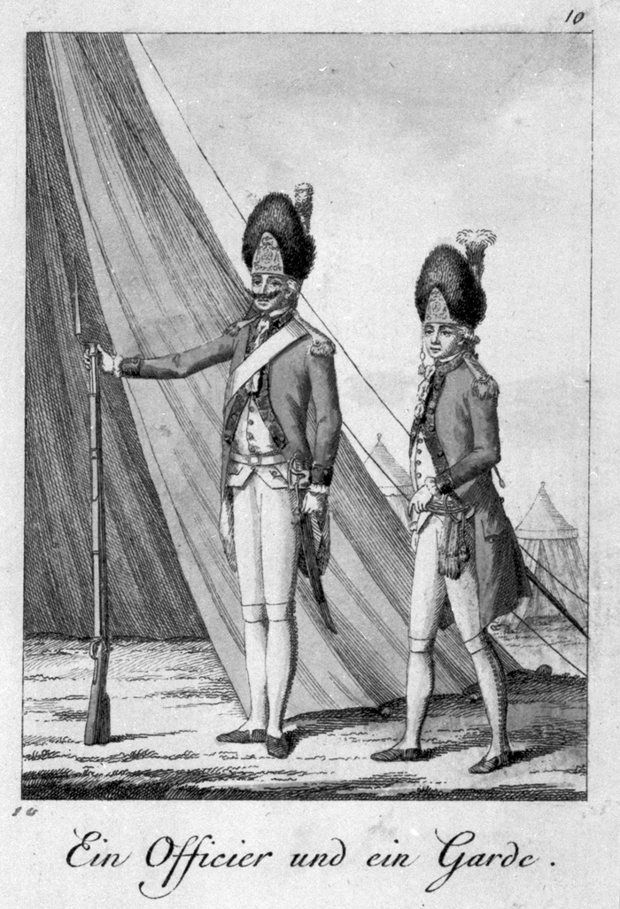 Die Abbildung um 1770 zeigt einen herzoglichen Gardesodaten, welcher den beschriebenen Säbel trägt. (Museum der Stadt Ludwigsburg)