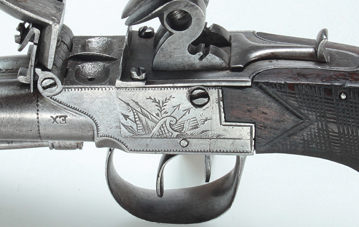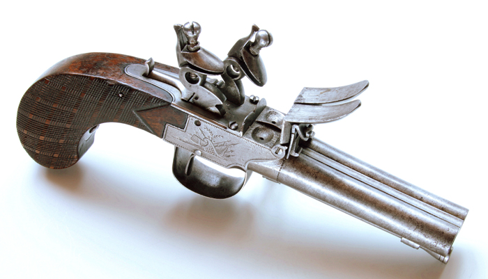 Zweischüssige Steinschloss-Taschenpistole aus Lüttich.