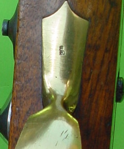 "V.C.S" unter "SUHL " ( Hersteller Valentin Christoph Schilling in Suhl) darüber "Anker" und darüber "ungekrönter Doppeladler" auf der Schlossplatte. Die beiden letztgenannten Stempel wiederholen sich auf dem Pulversack oben.
