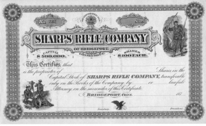 Die beiden ersten Gewehrmodelle 1849 und 1850 werden noch von der Firma A. S. Nippes in Mill Creek, Pennsylvania gefertigt, der Karabiner des Modells 1851 von Robbins & Lawrence in Windsor, Vermont. Es folgt 1852 die Gründung einer Vertriebsfirma in Hartford, Connecticut, die als Sharps Rifle Manufacturing Company den Namen von Christian Sharps trägt und der Sharps als technischer Berater angehört. Für jede hergestellte Waffe erhält er einen Ertragsanteil. Unter dem selben Firmennamen wird die Produktion etwa 1855 ebenfalls nach Hartford verlegt. 1874 erfolgt eine Reorganisation, man firmiert nun unter Sharps Rifle Company. Zwei Jahre später wird die gesamte Fabrik von Hartford nach Bridgeport, Connecticut verlegt, wo man bis zum Ende im Jahre 1881 den Firmensitz beibehält. Doch bis dahin verlässt eine in Quantität, Qualität und Vielfalt eindrucksvolle Produktion die Fertigungsstätten. Schrotgewehre und Militärwaffen (Modell 1853) werden hergestellt, Beecher’s Bibles bzw. John Brown Sharps spielen ihre Rolle in der politischen Diskussion um die Sklavenfrage, auch für das Militär und England wird gefertigt. Mit den New Model 1859, 1863 und 1865 Gewehren und Karabinern wird der schräg nach unten vorne gleitende Verschlussblock durch einen senkrecht absenkbaren ersetzt. Nach dem Bruderkrieg zwischen Nord und Süd werden genau diese Modelle bei der Firma Sharps auf Metallpatronen abgeändert. Ein Modell 1869 und ein im Arsenal von Springfield und bei Sharps aus vorhandenen Bürgerkriegsbeständen abgeändertes Modell mit der Bezeichnung 1870 folgen in kleiner Zahl, bevor mit dem Modell 1874 die schillernde Palette jener legendären Jagd- und Sportwaffen aufgelegt wird, die Sammler und Historiker gleichermaßen beschäftigt. Obwohl bereits im Jahre 1871 erstmalig hergestellt, hat sich die genannte Jahreszahl 1874 eingebürgert für ein Modell, das in seiner Vielfalt von Verwendungszwecken, Kalibern und Ausführungen zehn Jahre lang als die Waffe der Wahl für Jäger auf alles nordamerikanische Wild und Schützen, vor allem über weite Distanzen bis 1300 Yards in Frage kommt. Bei nationalen und internationalen Wettbewerben ist es immer wieder ein Modell, das für Aufsehen sorgt. Für die Wettbewerbe letzterer Art wird noch ein spezielles Modell 1877 entwickelt. Die Gebrüder Frank und George Freund, aus Heidelberg, ihres Zeichens Büchsenmacher, machen durch eigene Modifikationen auf sich aufmerksam. Mit dem Sharps-Borchardt-Gewehr (Modell 1878) kommt das Ende einer Reihe, die in der hektischen Zeit permanenter Neuerungen auf dem Gebiet der Waffen- und Munitionsentwicklung erfolgreich Schritt hielt und dem Käufer Optimales für sein Geld bot.